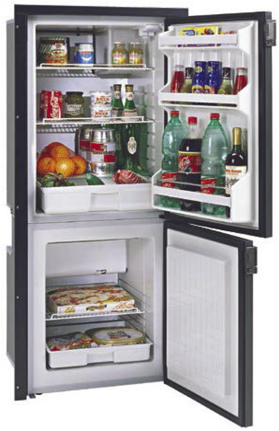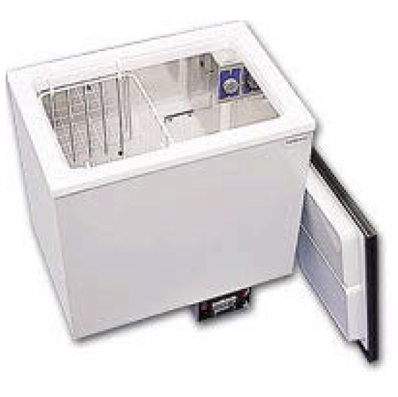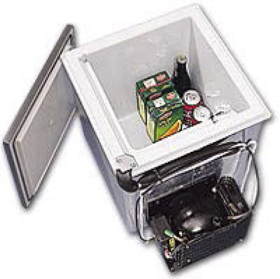 Встраиваемый 40-литровый автохолодильник-морозильник с большим L–образным испарителем. Крышка с резиновой прокладкой для термоизоляции. Вентилируемый компрессор может устанавливаться отдельно от холодильника на расстоянии до 1,5 м. Обычно устанавливаются на яхты и катера.